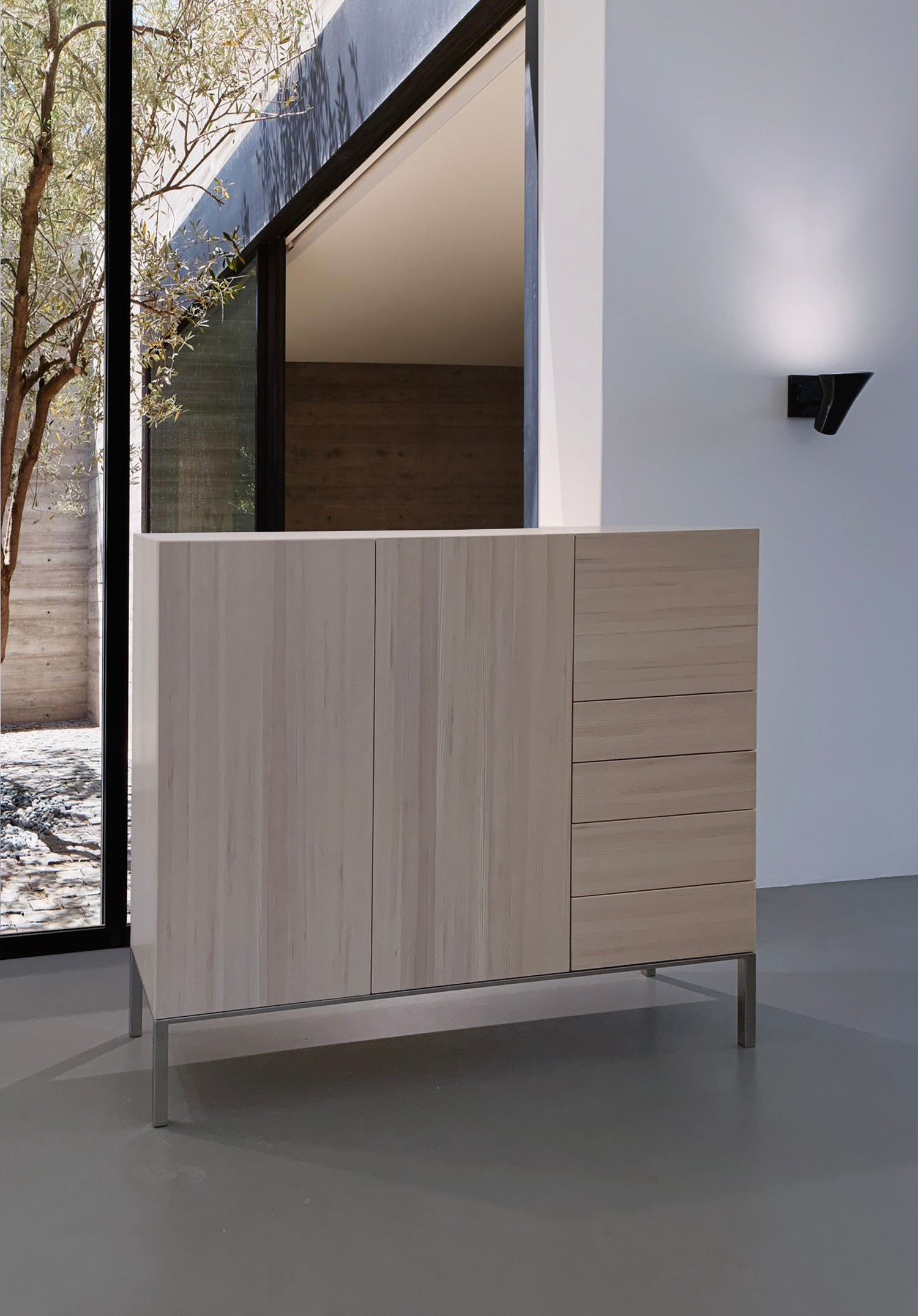 Highboard oder Sideboard? Hauptsache reichlich Platz! Und das liefern beide: sowohl das lange wie das hohe Board. Mit smarten selbstschließenden Schubladen, mit clever konzipiertem Stauraum und versteckten Eingriffen. Perfekt für den Eingangsbereich oder in der Nähe des Esstisches. Oder doch lieber im Schlafzimmer? Egal. Wo auch immer die beiden Boards auftauchen – sie sorgen für Ruhe und lässiges Understatement. Nicht zuletzt durch die Hauptakteurin: Danke Tanne!