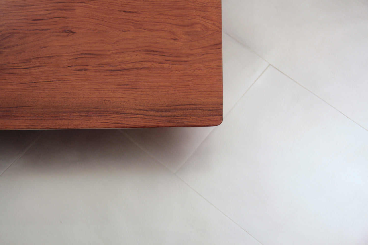 Jahrelang liebäugelte einer meiner Kunden mit dem „freilaufenden Mut“. Die Asymmetrie des Tisches hatte es ihm einfach angetan. Dann die Entscheidung: „Den will ich.“ Vor Ort zeigte sich jedoch schnell, dass eine andere Lösung stimmiger war. Entstanden ist ein ruhiger Esstisch aus dunkler Räuchereiche. Ebenfalls asymmetrisch, ein bisschen frech, ein bisschen überraschend. Und auf jeden Fall passgenau für Kunde und Raum.